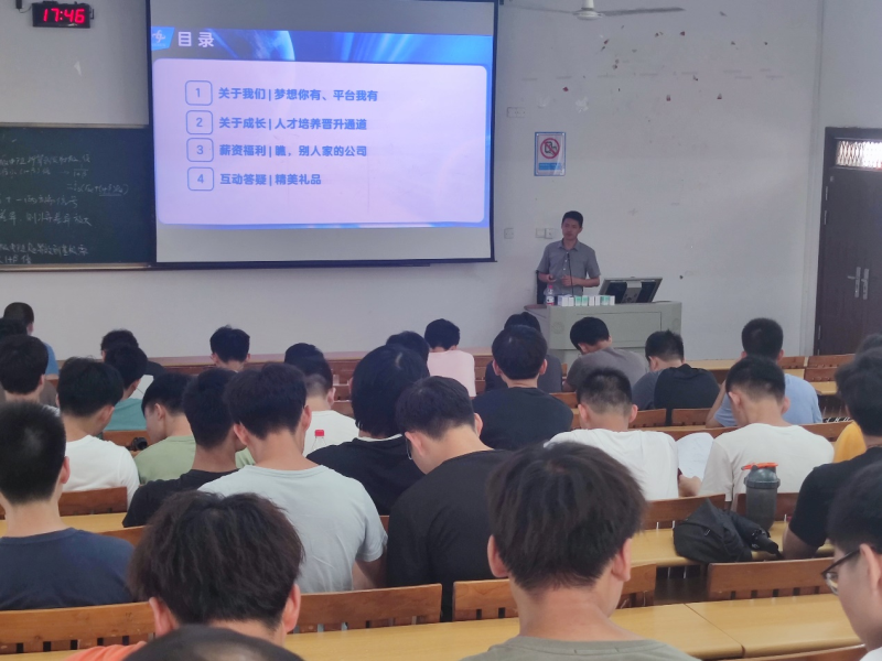 招聘会开始,唐经理播放宣讲视频介绍公司发展状况,让同学们初步了解公司的发展情况,接下来,王总监通过PPT展示和宣讲着重介绍了公司的发展历程,发展状况,以及未来发展战略,薪资待遇,并向同学们抛出橄榄枝,表达了集团对人才的求知若渴。宣讲会的最后,唐经理还为同学们准备了一份小礼物。最后,同学们纷纷递出自己的简历,带着对实习生活的美好愿景有序离开了会场。至此,本次专场招聘会圆满结束。