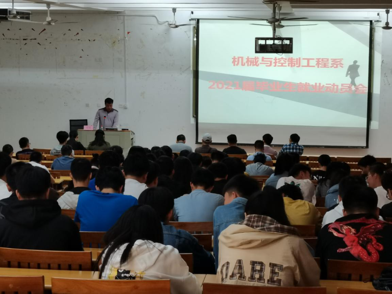 为做好2021届毕业生就业工作,11月11日星期三下午4:30分,我系在启智楼8208教室召开2021届毕业生就业动员大会,系党总支书记袁斌、系副主任甘卓权、系党总支副书记兼学工组组长李杰、毕业班辅导员以及毕业班班主任出席会议,2021届全体毕业生参加了会议。