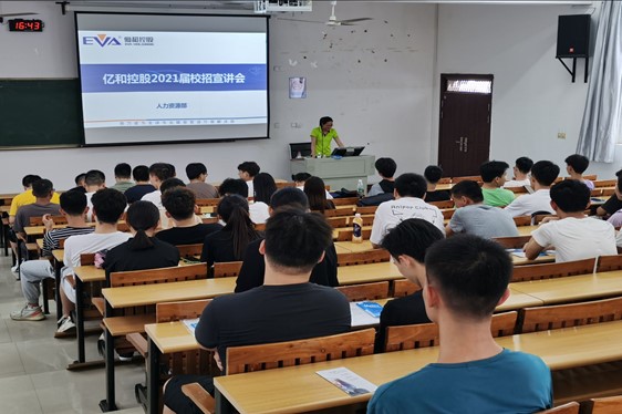 亿和控股有限公司公司于2021年5月11日下午16时40分在校园招聘宣讲室召开专题宣讲招聘会。陈女士代表亿和控股有限公司作为此次宣讲会的主讲人。我系组织80余名毕业生参加,陈女士代表亿和控股有限公司公司宣讲。