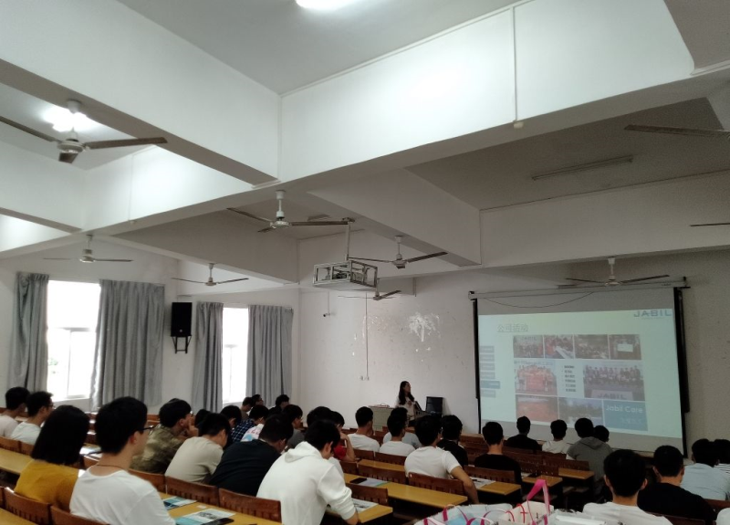 11月2日星期六下午15时,捷普绿点科技(深圳)有限公司(以下简称捷普科技)在八栋启智楼8201召开专场招聘会。朱琳女士代表捷普科技集团做此次专场招聘会的主讲人。