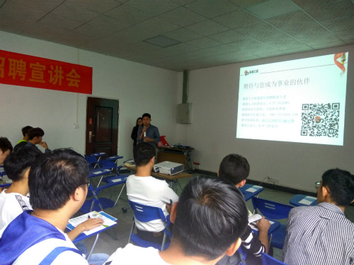 我系16届校友刘汶东同学向同学们分享了自己的工作经历,自己一年来的所见、所闻、所感,以及对于学弟学妹们的祝福和期望。最后对于同学们提出的疑问,一一进行解答,并祝愿祝愿同学们都能找到自己心仪的工作岗位。