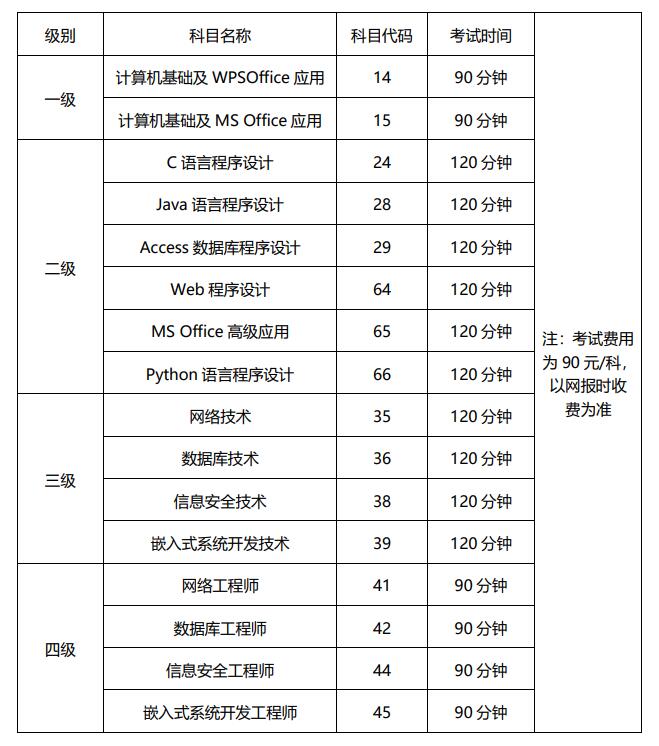 考生可根据自己的计算机水平,按照全国计算机等级考试考试大纲选择参加分校考点开考的NCRE考试相关级别,同次考试考生最多可报考三个科目, 且不允许重复报考同一个科目或在不同省份报考。考生缴费后如需增加或调整报考科目的,可在网上报名期间联系考点解锁原报名信息后进行操作。网上报名结束后不能再增加或调整报考科目。