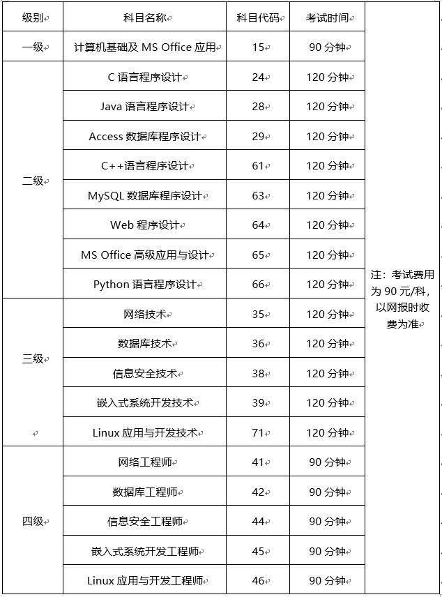 考生可根据自己的计算机水平,按照全国计算机等级考试考试大纲选择参加分校考点开考的NCRE考试相关级别,同次考试考生最多可报考三个科目, 且不允许重复报考同一个科目或在不同省份报考。考生应仔细核对报考科目是否正确,在缴费后不能退费,同时也不能修改报考科目或删除原报考信息。考生如在报错科目后仍然希望参加其他科目的考试,须在网上报名结束前增加报考科目。