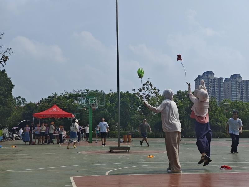 随着裁判的一声哨响,比赛正式开始。老师们精神饱满、奋力争先,为团队争取更好的成绩。现场气氛紧张而热烈,绣球穿梭于六米高的铁环当中,引得观众阵阵喝彩。