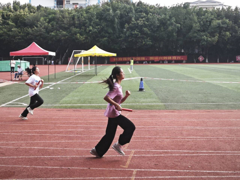 各系运动健儿们在赤红色的环道上展开激烈角逐。四个人的跑道,不止是速度与速度的比拼,更是团结与默契的考验。小小的接力棒,传递着勇气和力量,演绎着奋斗和拼搏。他们健步如飞、配合默契,团结一心,彰显我系运动健儿风采,展现出我系不抛弃不放弃的团队合作精神,更体现我系深深的集体荣誉感,为我系画上一个完整的句号。
