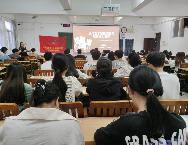 为加强学生宣传艺术思维培养和提升写作能力,进一步提升新闻宣传效果,我系于11月6日物华楼6402开展第十一期“青马工程”——“宣传艺术思维培养和写作能力提升”专题培训,本次专题培训由赖丽莉老师主讲,全体“青马班”成员参加。