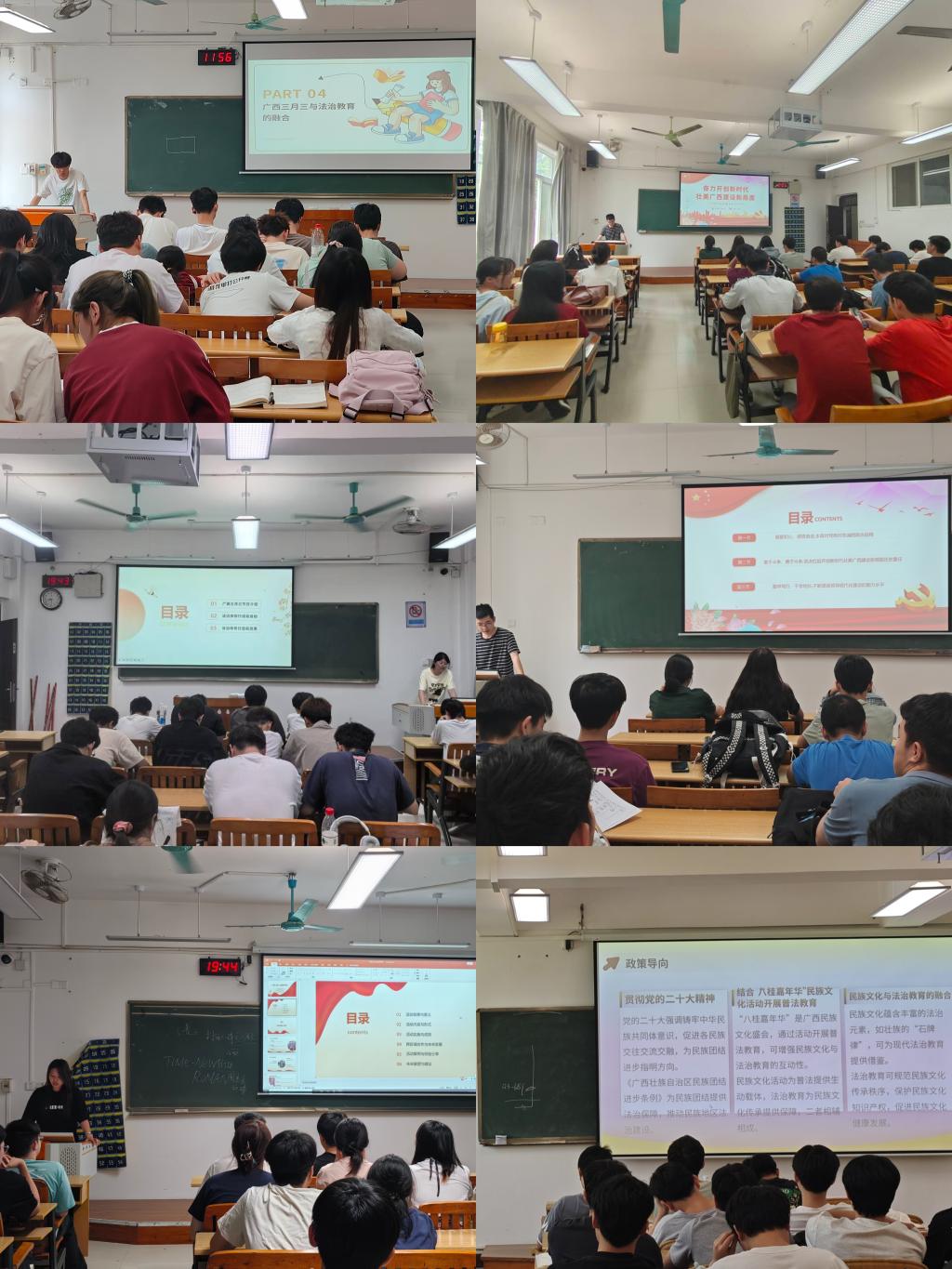 活动通过PPT讲解、青年分享会等多种形式,系统展现广西“三月三”与法治文化的融合,深化同学们对法治重要性的认识。活动呼吁传承发扬广西“三月三”文化与法治精神,引导青年为建设法治广西、法治中国贡献力量。