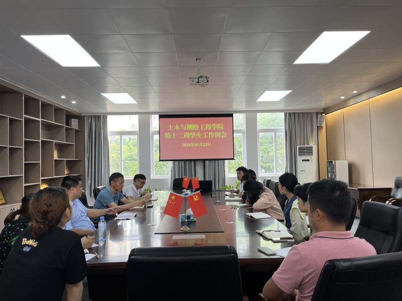 5月22日上午,土木与测绘工程学院于物华楼406会议室召开第十二周学生工作例会,学院党委书记刘茂军、党委副书记兼学工组长何建金、团委书记韦选建及全体辅导员参加本次会议,会议由党委副书记兼学工组长何建金主持。