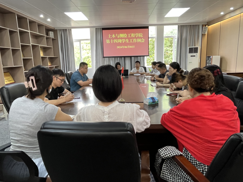 6月4日,土木与测绘工程学院在物华楼406会议室召开第十四周学生工作例会,学院党委副书记兼学工组长何建金、团委书记韦选建及全体辅导员参加会议。