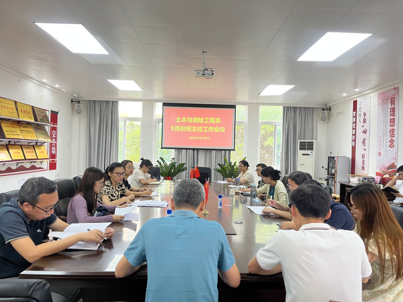 5月23日上午,土木与测绘工程系于物华楼406会议室召开5月份班主任工作例会,会议由团总支书记韦选建同志主持,全体辅导员、班主任参加本次会议。