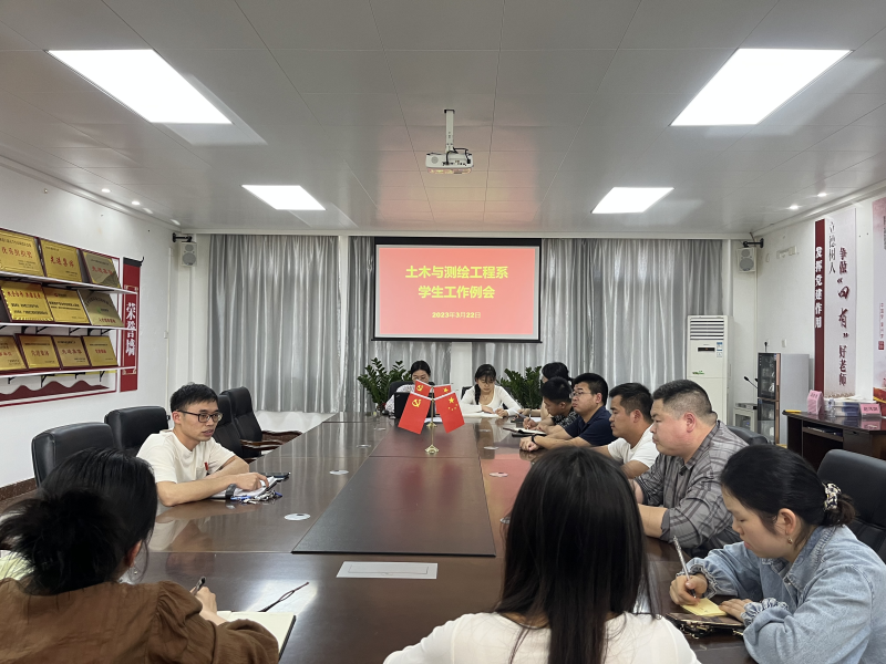 3月22日下午,土木与测绘工程系于物华楼6406会议室召开2023年春季学期第五周学生工作例会,团总支书记韦选建及全体辅导员参加本次会议,会议由团总支书记韦选建主持。