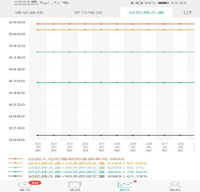 3、借助软件背单词是最高效的,他使用的是墨墨背单词。因为记住一个单词,不是一天看十遍,而要是把这十遍分散在一两个月内看,这样才是有效的记忆。显然,当单词量达到几千的时候,要人为地在单词书上标记提醒今天该复习的单词是可以想象得到的不现实的。