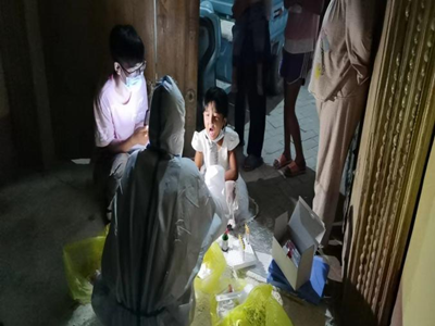 日常工作:带领村干部和村医凌晨紧急核查采集高风险地区人员核酸。