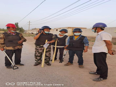 50年一遇的洪水来袭,与村民一起来拉石填土,在村庄外围构筑防御工事。