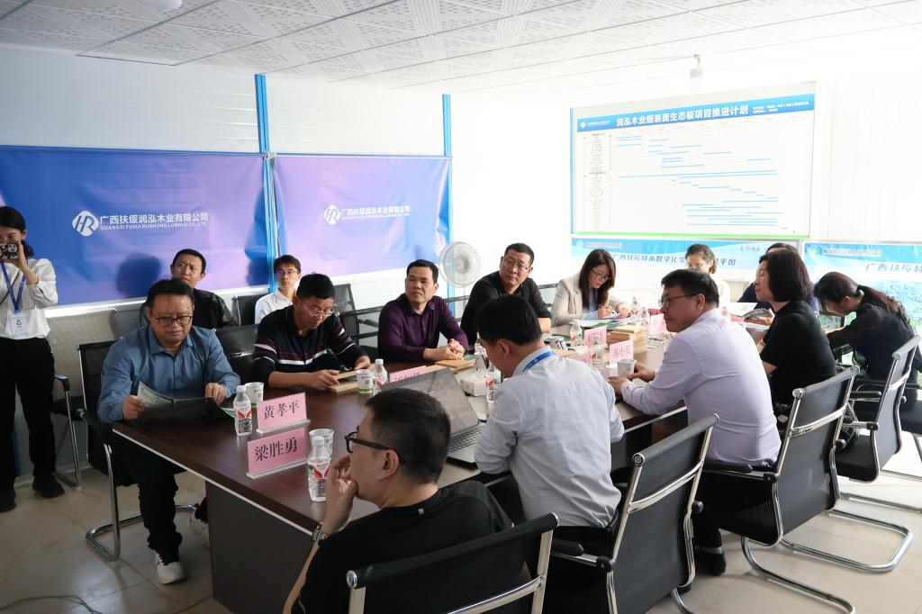 调研期间,梁尚尉一行还实地考察了润泓木业旗下旋切厂、山圩镇雷卡活立木砍伐区、广西智隆木业公司、润泓木业细表面胶合板项目部和润泓科技公司。