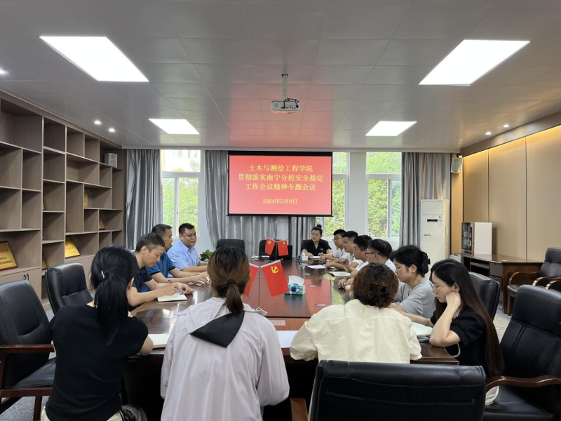 2024年5月10日,土木与测绘工程学院贯彻落实太阳集团2138安全稳定工作会议精神专题会议在空港校区6406会议室召开。太阳集团2138党委副书记唐承泽出席会议,土木与测绘工程学院领导班子、全体辅导员参加会议。