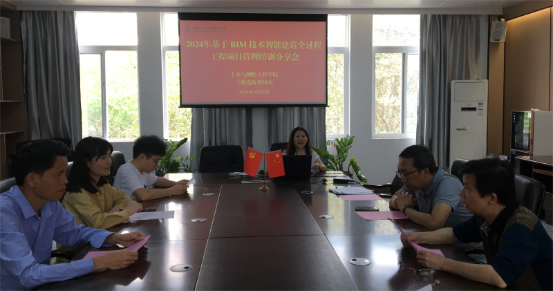 为推进专业建设、教学改革、学生就业工作,3月22日下午14点30至16点,工程造价教研室组织开展了“2024基于BIM技术智能建造全过程工程项目管理培训”分享会。本次活动主要由参加培训的教研室主任及骨干教师对此次培训内容进行分享交流。