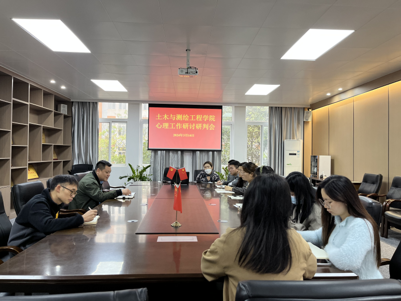 3月14日,土木与测绘工程学院在物华楼406会议室召开2024年春季学期心理研判会。学院学生工作负责人何建金、韦选建及全体辅导员参与本次会议。会议由学院学生工作负责人何建金主持。