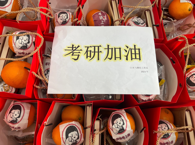 为了帮助考研学子缓解备考压力,鼓舞考研士气,土木与测绘工程系于2023年12月20日为考研学子准备了考研暖心包。我系党总支副书记兼学工组长何建金及辅导员赖丽莉老师为考研学子们发放精心准备的考研暖心包。收到考研暖心包后,考研学子邹绍豪表示:“非常意外也很感动。没想到系部老师一直关注我们考研,给了我们很大的信心。我们一定会带着这些祝福,铆足干劲,争取考出好成绩”。