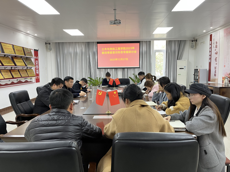 12月27日上午,我院于物华楼406会议室召开2023年第四季度意识形态工作研讨会。学院负责人黄文学、何建金、韦选建及全体辅导员到场与会,会议由黄文学主持。