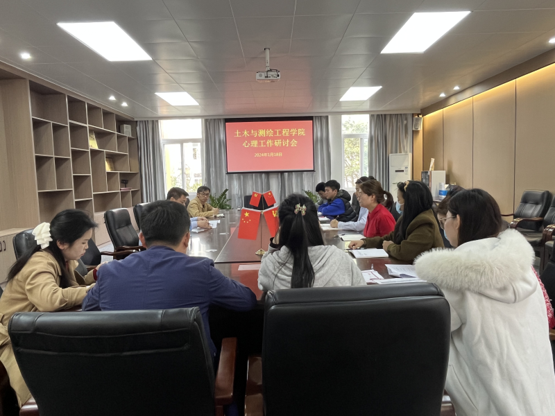 1月18日下午,土木与测绘工程学院在物华楼406会议室召开2024年1月份心理研判会。学院负责人何建金、韦选建及全体辅导员出席参加会议。