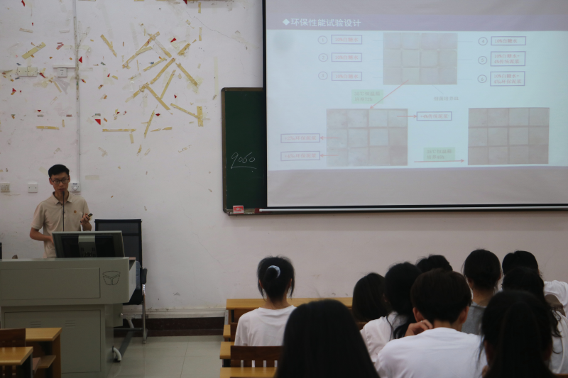 课上,吴克雄老师首先向同学们介绍教师个人创新经历与成果,系统全面讲解新型环保泥浆的研究过程及相关成果,同时,吴老师还邀请往届互联网+获奖项目负责人蒋佳同学分享科研产品迈向创新创业的过程,展现教师实践水平与知识深度,激发同学对科研创新的兴趣,引导同学们积极进行创新创业相关思考。接着,学生分享以小组为单位制作的工程前沿材料课件,加深对环保建筑材料科研发展方向的了解。最后,吴克雄老师使用新兴教学平台随机抽取同学,询问专业教育、创新创业与科研三者间的联系与区别,并结合同学发言进行总结,鼓励同学们积极参与创新创业项目和科研活动,勇于尝试。
