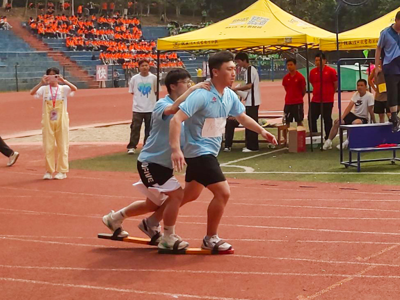 4月18日上午,我校第三届民族运动会男女子双人板鞋预赛在紧张的氛围中拉开了序幕。