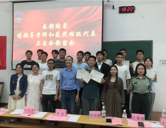 会议伊始,韦选建老师宣读优良学风班表彰文件,对获奖班级表示衷心祝贺。在欣赏完一段关于优良学风班班集体的视频后,辅导员老师为获奖班级颁发荣誉证书。