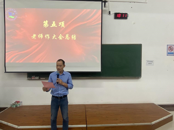 罗勇老师为本次大会做总结,他强调要学习优良学风班级的建设经验,向优良学风班看齐,并且提出三点要求:一是树立规律意识,校纪校规记心中;二是加强班级管理,营造优良学风;三是班级之间互帮互助,加强班级凝聚力。