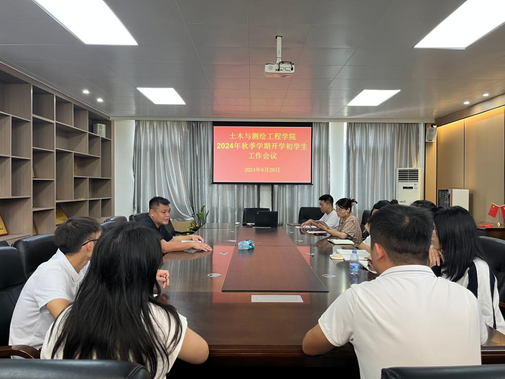 8月28日上午,土木与测绘工程学院于物华楼406会议室召开2024年秋季学期开学初学生工作会议,学院党委副书记兼学工组长何建金、团委书记韦选建及全体辅导员参与本次会议。