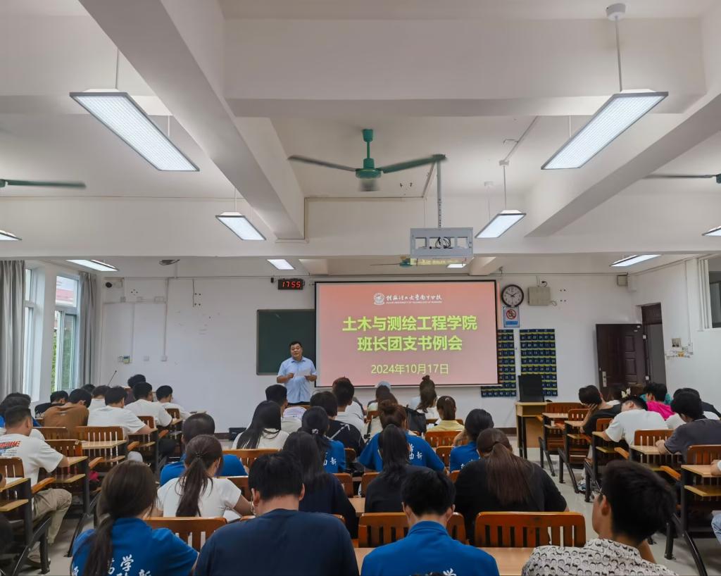 为了充分发挥学生骨干力量,顺利开展各项学生工作。我院于10月17日下午在物华楼402教室召开2024年秋季学期班长、团支书例会。土木与测绘工程学院党委副书记兼学工组组长何建金出席并主持会议,全体在校班级班长、团支书参加会议。