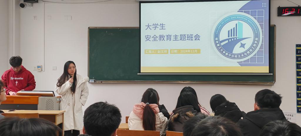 为贯彻落实学校对于学生安全教育及管理工作方面的要求,旨在增强学生的安全意识,确保校园生活安全有序,土木与测绘工程学院于2024年12月23日至12月29日开展了安全教育主题班会。