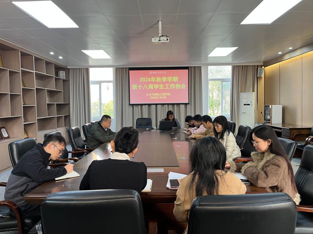12月30日,土木与测绘工程学院于物华楼406会议室召开第十八周学生工作例会,学院党委副书记兼学工组长何建金、团委书记韦选建及全体辅导员参与本次会议,会议由党委副书记兼学工组长何建金主持。
