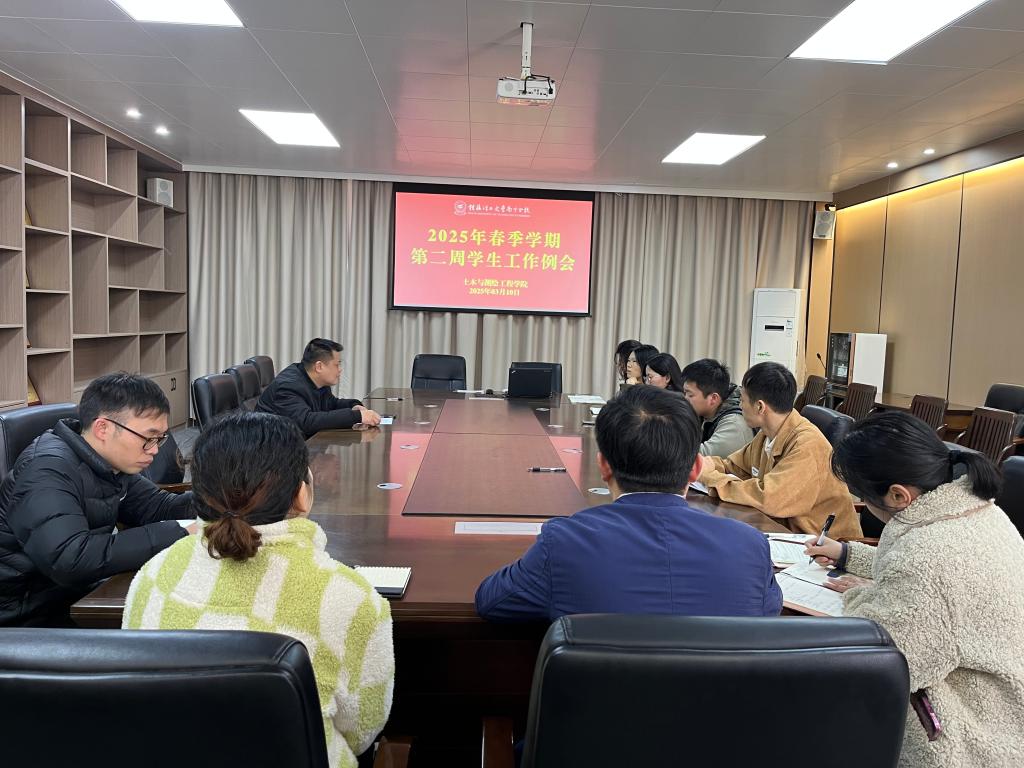 3月10日下午,土木与测绘工程学院第二周学生工作例会在物华楼406会议室召开,会议由学院党委副书记兼学工组组长何建金主持,全体辅导员参与本次会议。