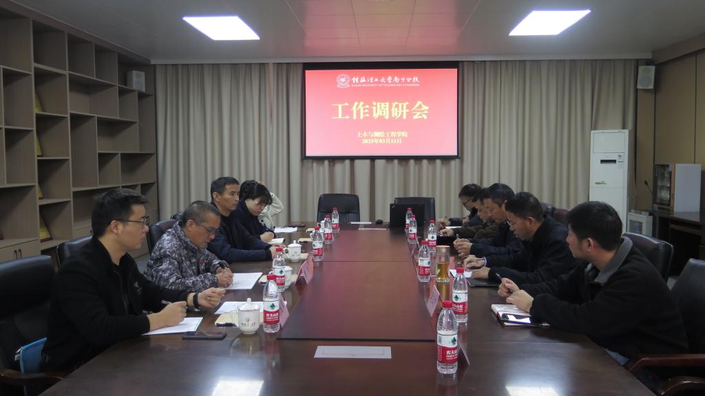 随后,唐承泽一行到学院开展相关调研。调研会上,学院相关负责人就党建工作、教师队伍建设、学生工作、教学科研工作、创新创业工作等情况进行汇报,重点回顾2024年工作及剖析2025年重点任务目标及工作举措。