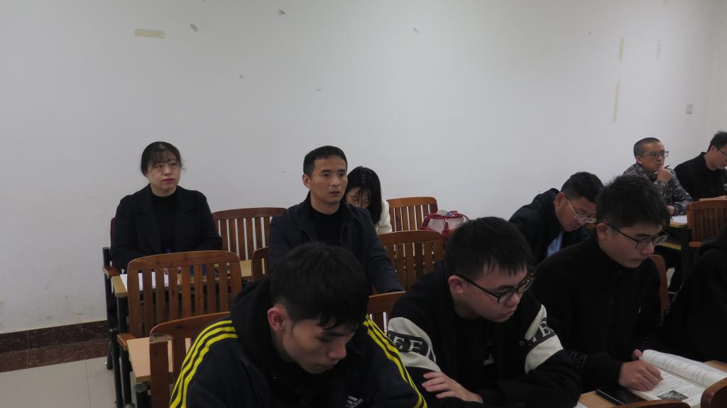 课堂上,唐承泽一行认真听取了教师的授课内容,详细记录了教学环节设计、师生互动及课堂效果等情况。课后,唐承泽与授课教师、学生进行了深入的交流与探讨。唐承泽指出,要持续深化教学改革,勇于创新,不断提升专业课教学质量和水平。