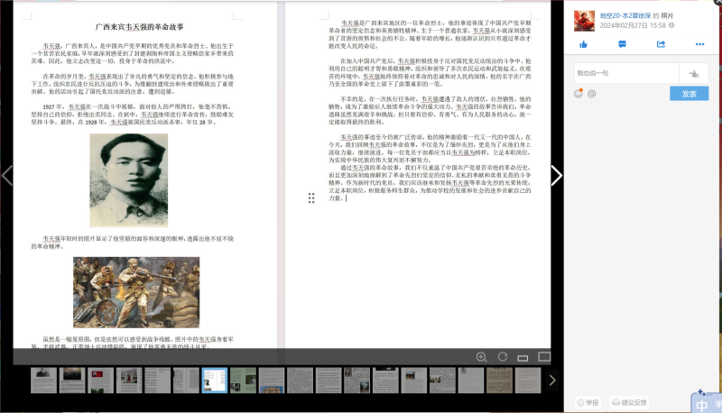 活动第二项,支部全体党员同志用文字讲述革命故事,图片描绘革命现实艰辛。支部党员何齐文同志感悟到:一辈革命家为党和人民事业不畏艰难、敢于斗争、善于斗争、拼搏奉献的精神,领悟到了共产党人高尚的情操品格、坚定的理想信念、无畏的革命精神。