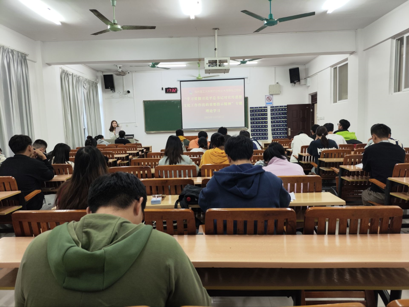 宣传思想文化工作事关国家长治久安,事关民族的凝聚力和向心力。我系学生第四党支部于2023年12月7日下午在6406会议室开展“学习贯彻习近平总书记对宣传思想文化工作作出的重要指示精神”专题理论学习,本次会议由支部书记赖丽莉同志主持,支部纪检委员曹小敏同志主讲。
