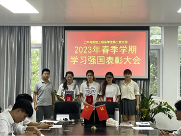 会前,按照学生第二党支部支委会制定的《学习强国》学习奖励办法,表彰大会对2023年上半年获得《学习强国》学习“强国标兵”荣誉称号的3名同志予以表彰,并为她们颁发了证书。会上号召全体党员干部要以她们为榜样,加强学习,不断提高自身政治素质和理论水平。