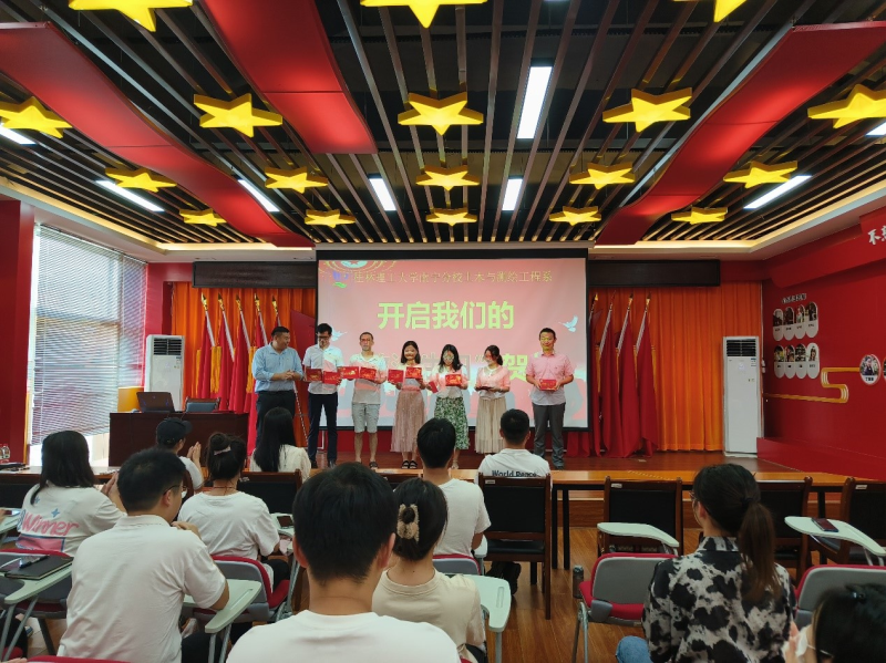 活动议程首先是重温入党誓词仪式。在土木与测绘工程系党总支书记黄文学同志的领誓下,所有党员同志右手握拳,向党旗庄严宣誓,用铿锵有力的声音,发出了“为共产主义奋斗终身”的坚定决心。第二项议程由黄文学书记为我系党总支47名党员进行颁发“政治生日”贺卡。黄文学书记希望党员们要时刻牢记党员身份,注重党性修养,增强党性意识,践行入党誓词,永葆中国共产党党员的先进本色。第三项议程是学生代表入党初心分享会,活动邀请老兵团团长周艺和外联部部长王龙两名退伍军人进行宣讲。两位退伍军人学生用铿锵有力的话语分别诉说着军旅青春的无悔选择,分享着报效祖国的青春梦想,赢得了在场党员的阵阵掌声。