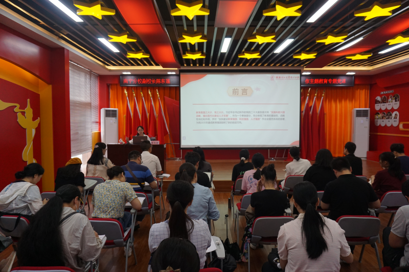 陈东莲副校长从“新时代加快建设教育强国的重大战略意义”、“新时代加快建设教育强国的坚实基础”、“新时代加快建设教育强国的总体方向和重点任务”、“立德树人,培养德智体美劳全面发展的社会主义建设者和接班人”四个部分进行讲授,运用大量详细数据和案例说明我国教育事业的发展变革,强调实施教育强国、科技强国和人才强国的重要战略意义和具体目标要求;同时,结合分校各项事业高质量发展总目标,指出全体教师要认真贯彻“三融一基”人才培养新模式,坚持“五育并举”和“十大育人体系”,坚持立德树人根本任务。