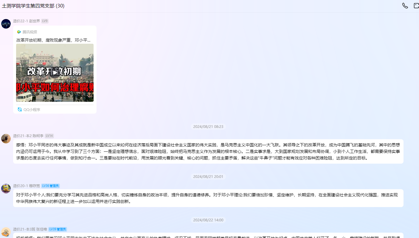 为深切缅怀邓小平同志的丰功伟绩,传承和弘扬邓小平同志的革命精神和崇高风范,我院学生第四党支部于 2024年8月22日在线上开展了“纪念邓小平同志诞辰 120 周年”主题党日活动。活动由支部书记赖丽莉同志主持,支部全体党员参加本次活动。