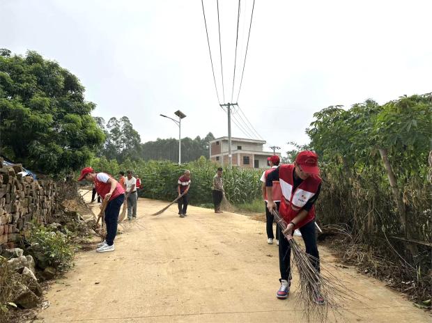 我院师生党员及志愿者与那标村村民并肩作战,联合开展了环境卫生整治行动。大家手持扫帚、铁锹,深入田间地头、村道小巷,清理垃圾、整治乱堆乱放,用实际行动诠释了共建共享的理念,不仅美化了乡村环境,更增强了校地双方的责任感和使命感,为乡村振兴贡献了青春力量,促进了校地之间的情感交流与融合。