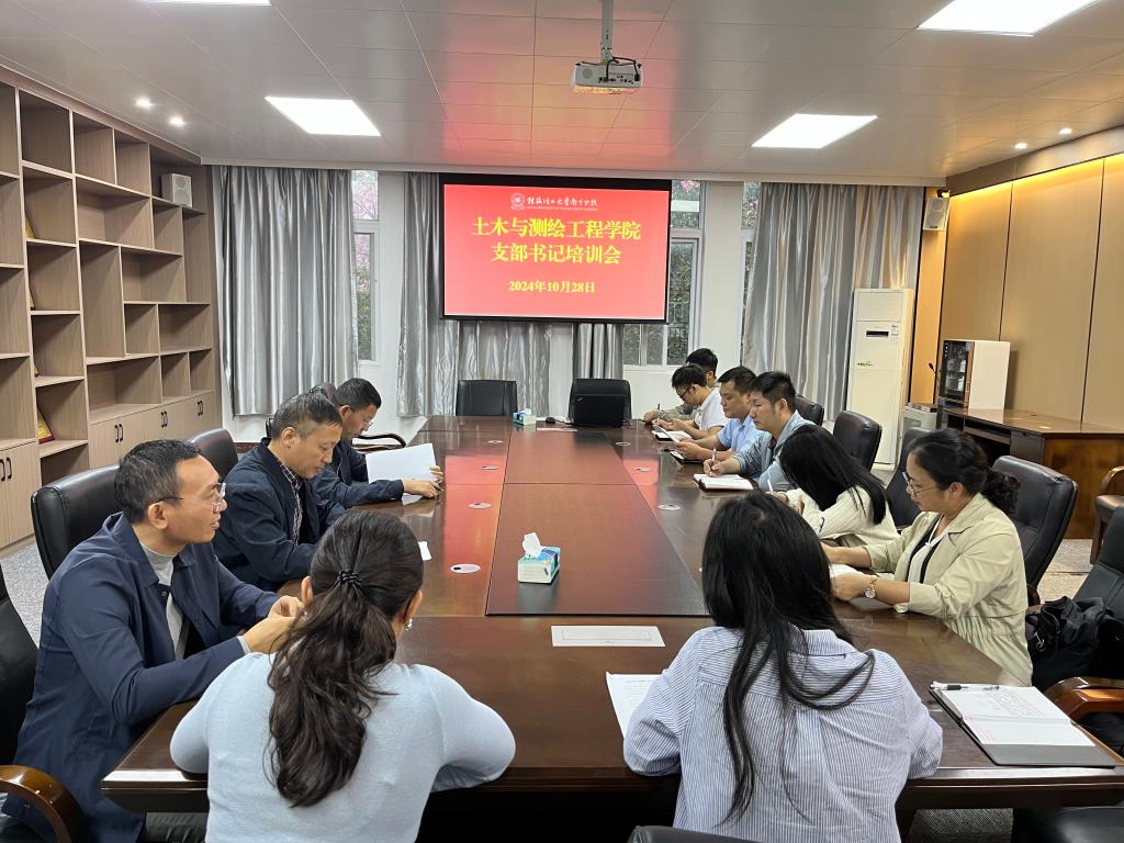 为全面贯彻落实新时代党的建设总要求,加强党支部书记队伍建设,10月28日,土木与测绘工程学院在物华楼6406会议室开展党支部书记培训会议,本次会议由学院党委书记刘茂军主持,学院领导班子及全体党支部书记参加。