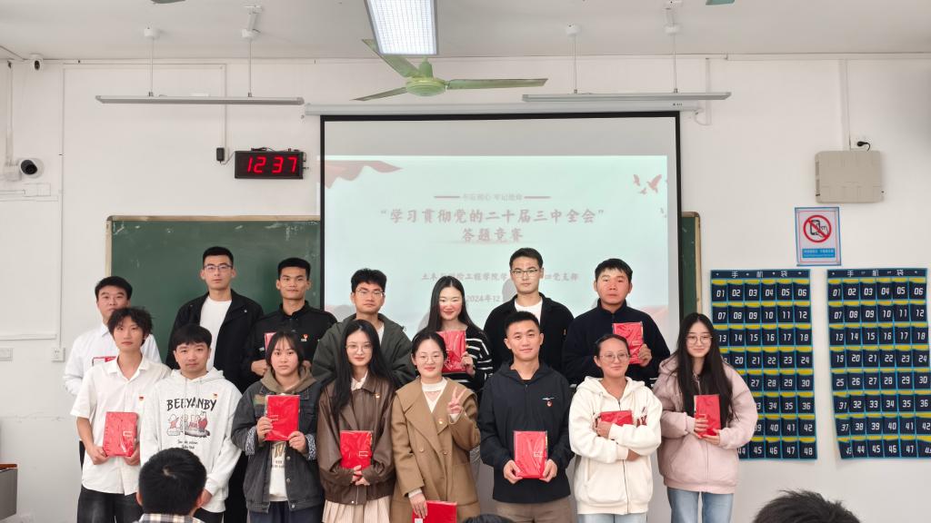 为深入学习贯彻党的二十届三中全会精神,我院学生第二、四党支部于12月3日中午在6405教室开展“学习贯彻党的二十届三中全会精神答题竞赛”主题党日活动,本次活动由支部书记赖丽莉同志主持,全体党员参与答题竞赛活动。
