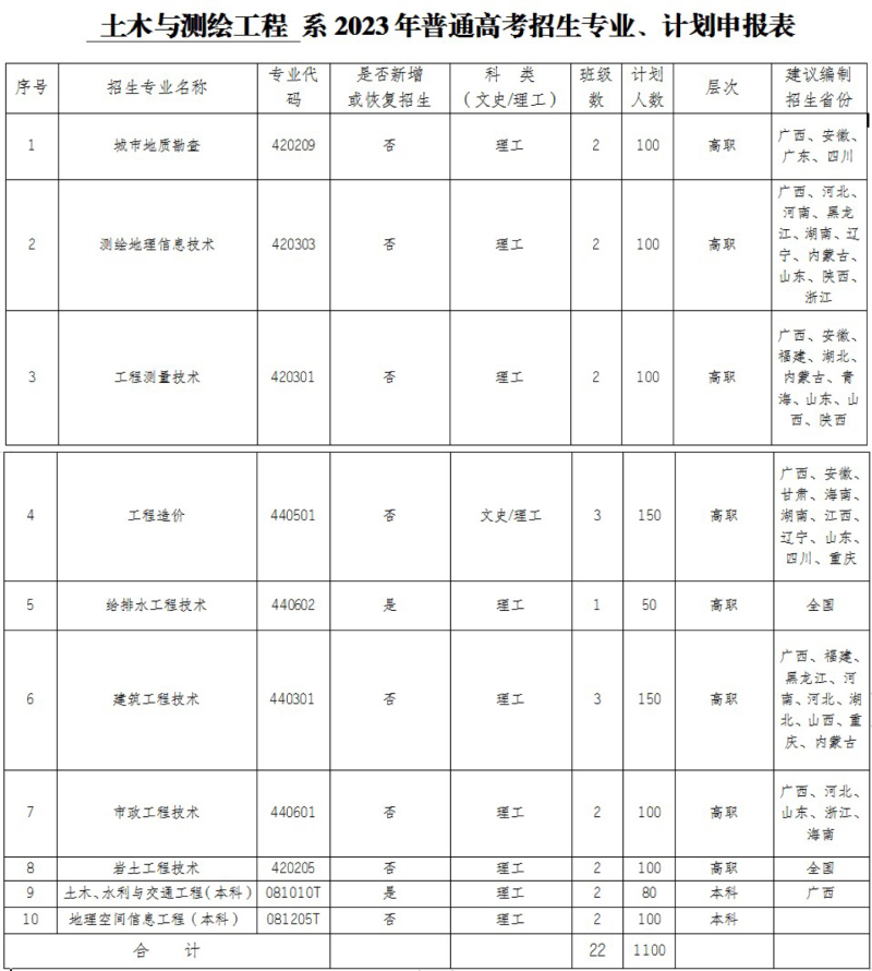 土木与测绘工程 系2023年普通高考招生专业、计划申报表