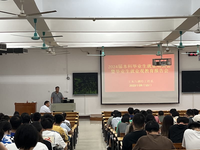 为深入贯彻落实党中央“稳就业”“保就业”的决策部署,引导毕业生树立正确的就业观,2023年9月15日下午,我系于8208教室召开了2024届本科毕业班学生就业动员大会暨毕业生就业观教育报告会。我系党总支书记黄文学、党总支副书记兼学工组长何建金出席大会,我系全体2024届本科毕业班学生到场参会。