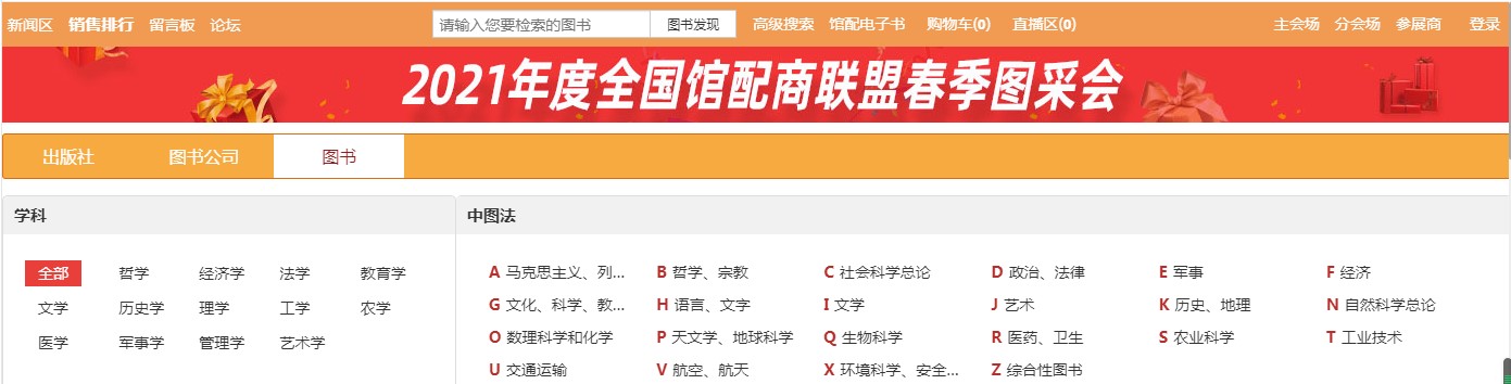 2.2、图书分会场:根据图书的中图法分类及学科分类展示各类图书,直接点击分类即可进入选书界面