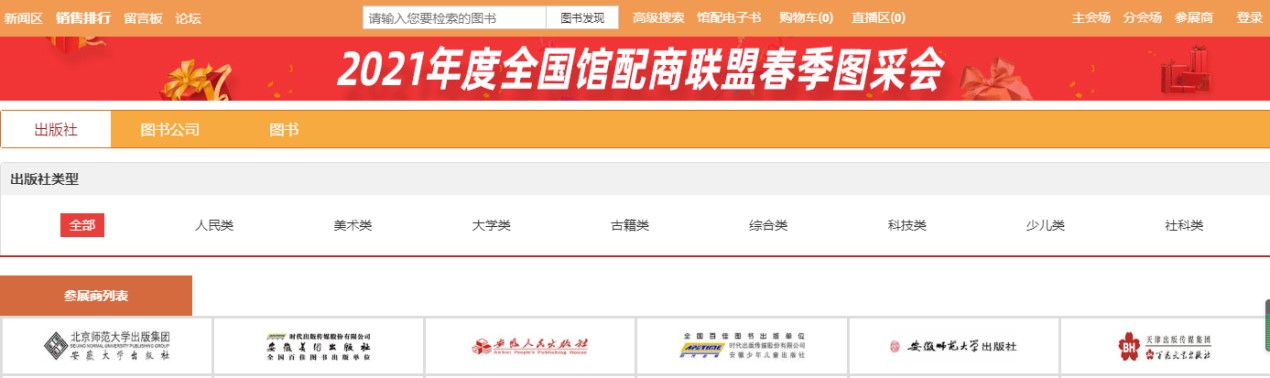 2.1、出版社分会场:按出版社综合分类和出版公司名称展示各出版社图书,点击分类首先展示该类别下的出版社名单,点击出版社名称即可进入选书界面。