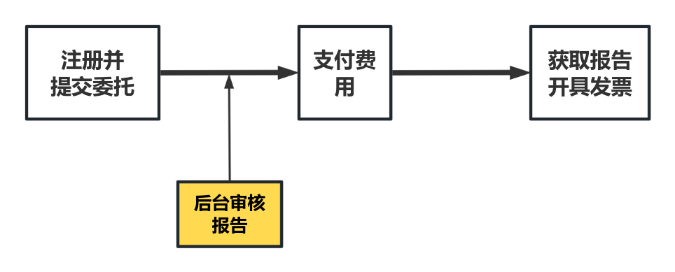 服务流程:用手机号进行注册,在线提交委托,并完成缴费。